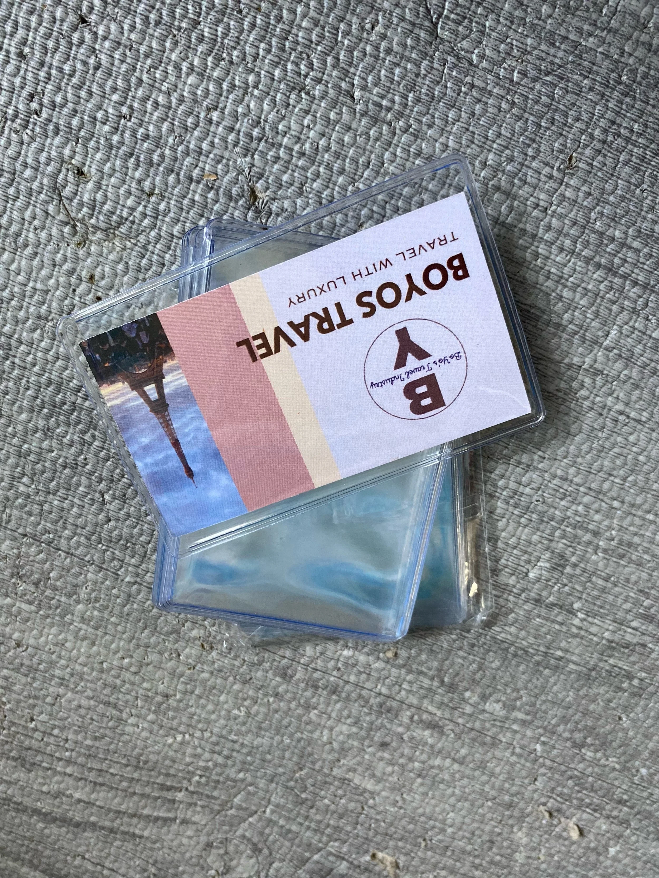 boyos Travel Swag Shop Travel Cup $1.00 Drink Cooling Sleeve $1.00 Luggage Tag $1.00 Hotel Vanity Set $1.00 Plastic Pocket Folder $1.00 Card Raincoat $1.00 Custom Motel Keychain $2.00 Travel Planner Sale Price: $5.00 Original Price: $10.00 Sale Plastic containers with lids $1.50 Drawstring travel Storage Bag $3.00 Compressed Towels $0.50 Packing list $0.50 Shoe Covers from $0.50 Sale Trinket Tray $1.00 Custom BoYo’s Hat $5.00 Portable Heat Seal Pouches $0.50 Waterproof Card Inserts $1.00 Pocket Tissue $1.00 Hand Washcloth $1.00 Vacay Kit $3.00 Safety Whistle $1.00 Bamboo Toothbrush $1.00 Mini Travel Journal $1.00 Flavored Toothpicks $0.50 Bamboo Razors $1.00 Personal Travel Mirror $1.00 Toothbrush Holder $0.50 Face Cloth $1.00 Keychain Hand Sanitizer $3.00